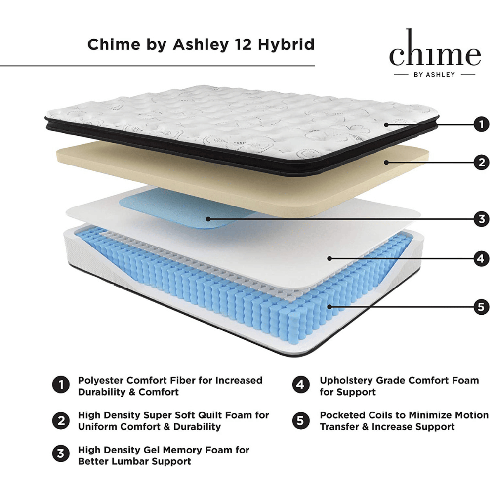 The Signature Design by Ashley Chime Plush Hybrid Queen mattress is a top-rated bed with the perfect combination of comfort and support.