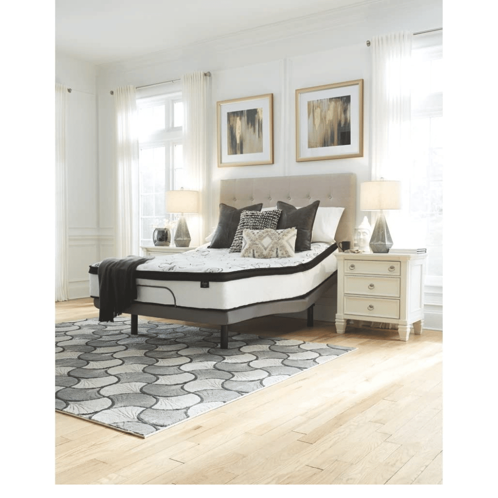 The Signature Design by Ashley Chime Plush Hybrid Queen mattress is the perfect choice for those looking for a restful night’s sleep.