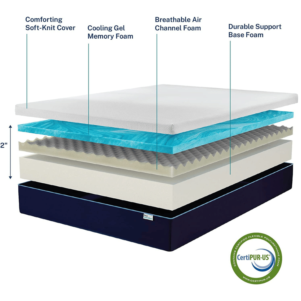 The cooling mattress has two inches of adaptive foam topped with ceramic and cooling gel. This combination creates a temperature-regulated sleeping surface perfect for couples needing relief from pressure points.