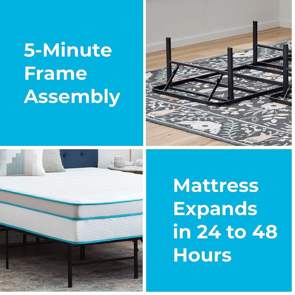 After unboxing the Zinus Green Tea Memory Foam Queen mattress, it will expand to its original shape in 72 hours. Get the perfect night's rest with this reliable and comfortable queen-size mattress!