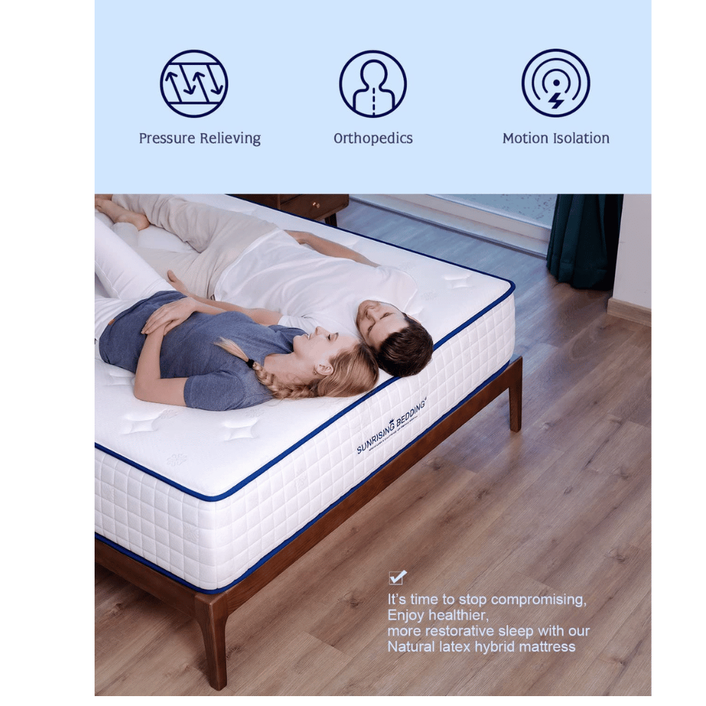 Enjoy quality sleep and reap the benefits of a healthier sleep style with Sunrising Bedding's 12-inch Natural Latex Queen Mattress.