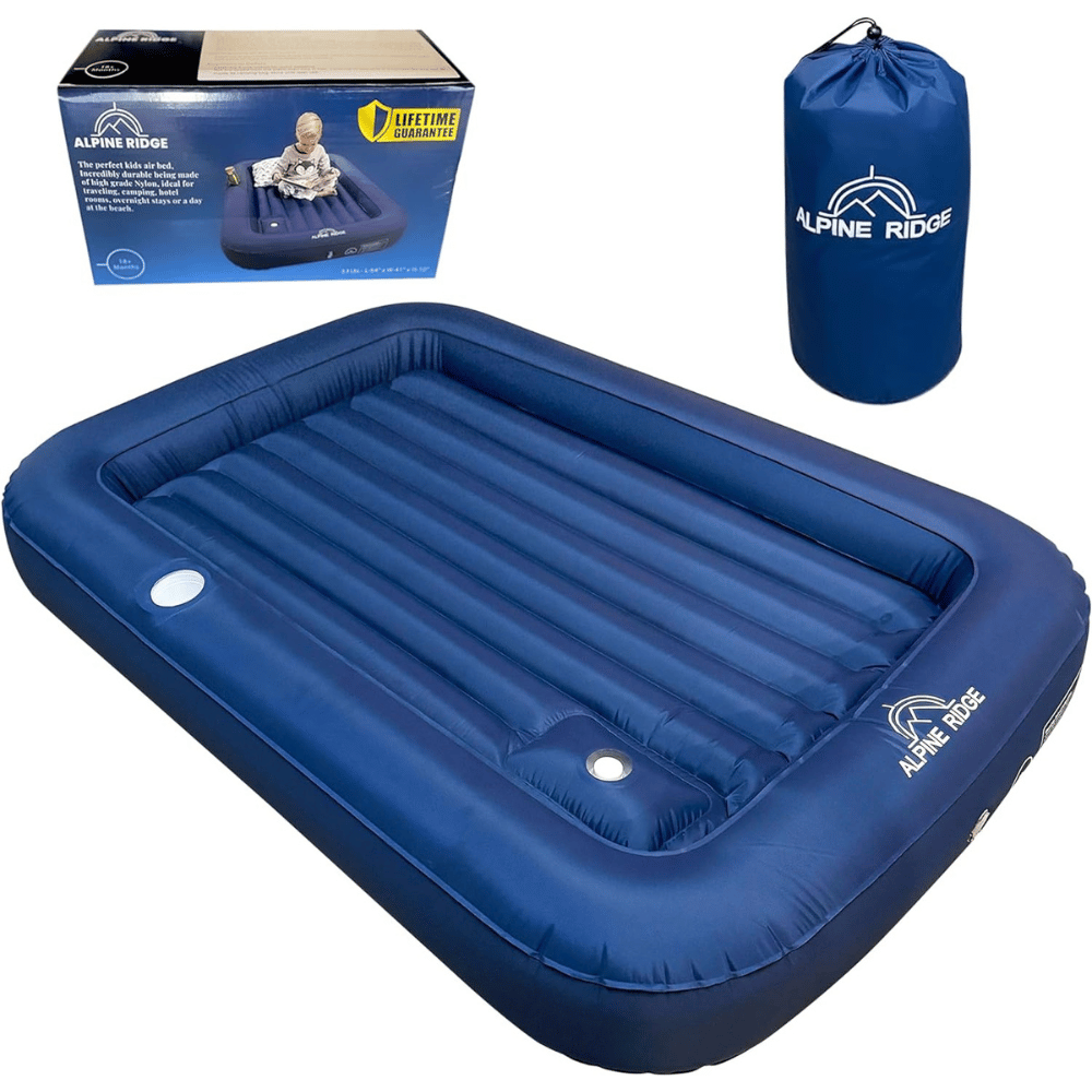 - Crafted for active, outdoor-loving families, this portable nylon inflatable toddler air mattress provides a sturdy, comfortable sleeping option.