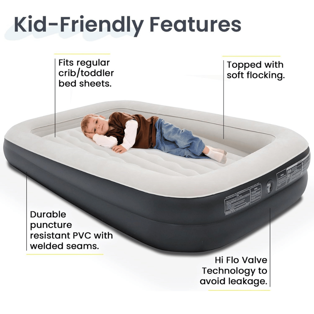 - This inflatable toddler air mattress is designed for those who value ease of use and robust durability in one package.