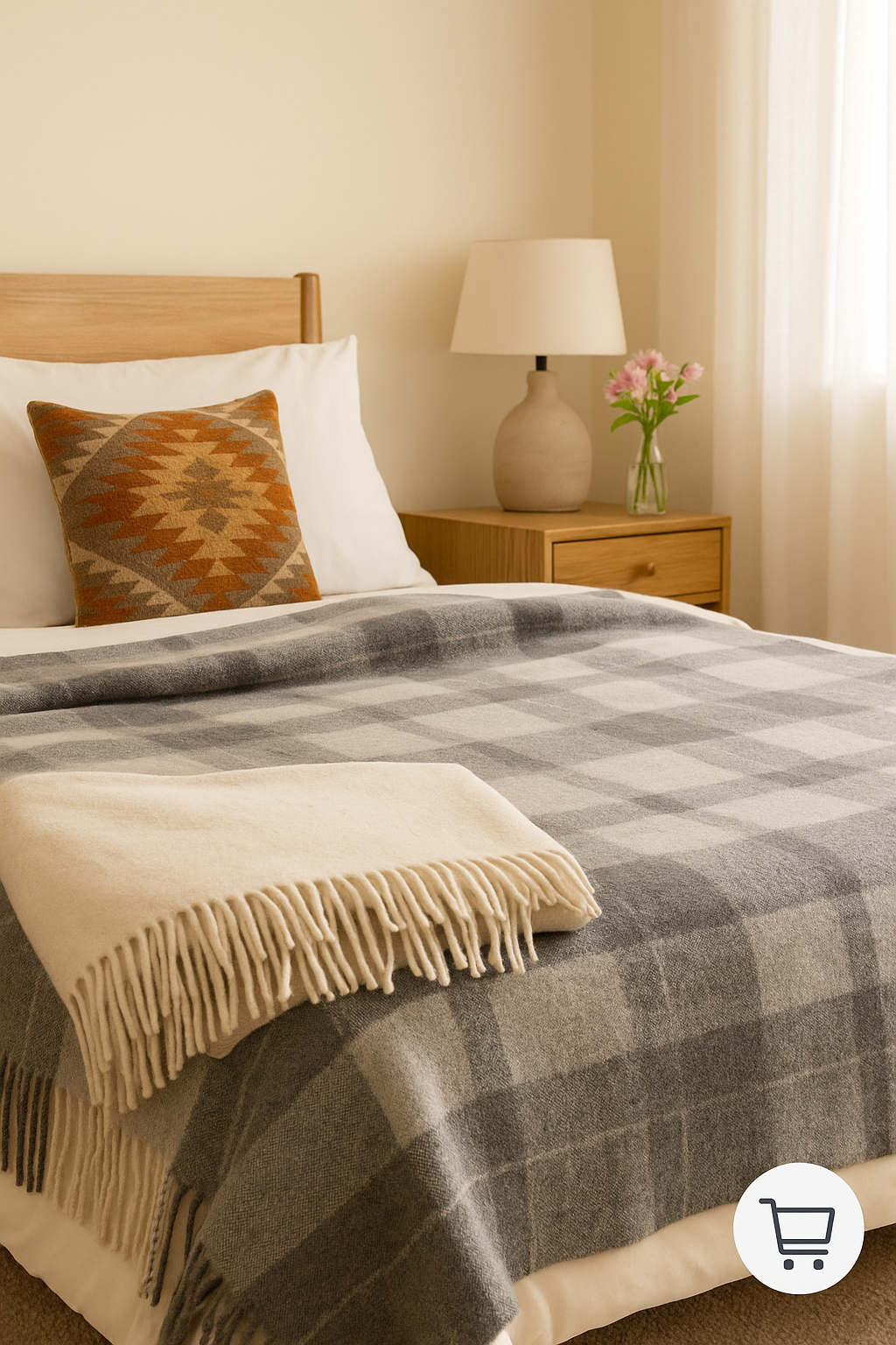 The Desert Breeze Andean Collection combines 50% alpaca wool with 50% merino wool, expertly woven in Peru. This balanced blend gives you the silky softness alpaca is famous for, and merino’s resilience and loft. At around 550 GSM, the blanket feels substantial but breathable.