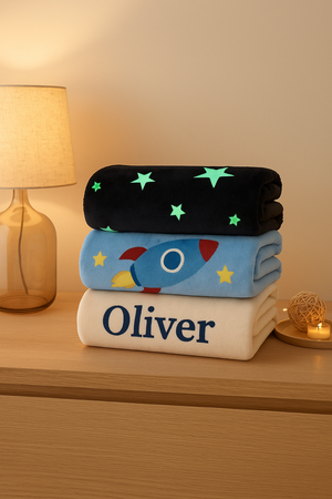 Whether it’s a blanket with their name, favorite animal, or glow-in-the-dark design, these custom creations make bedtime and playtime extra special.