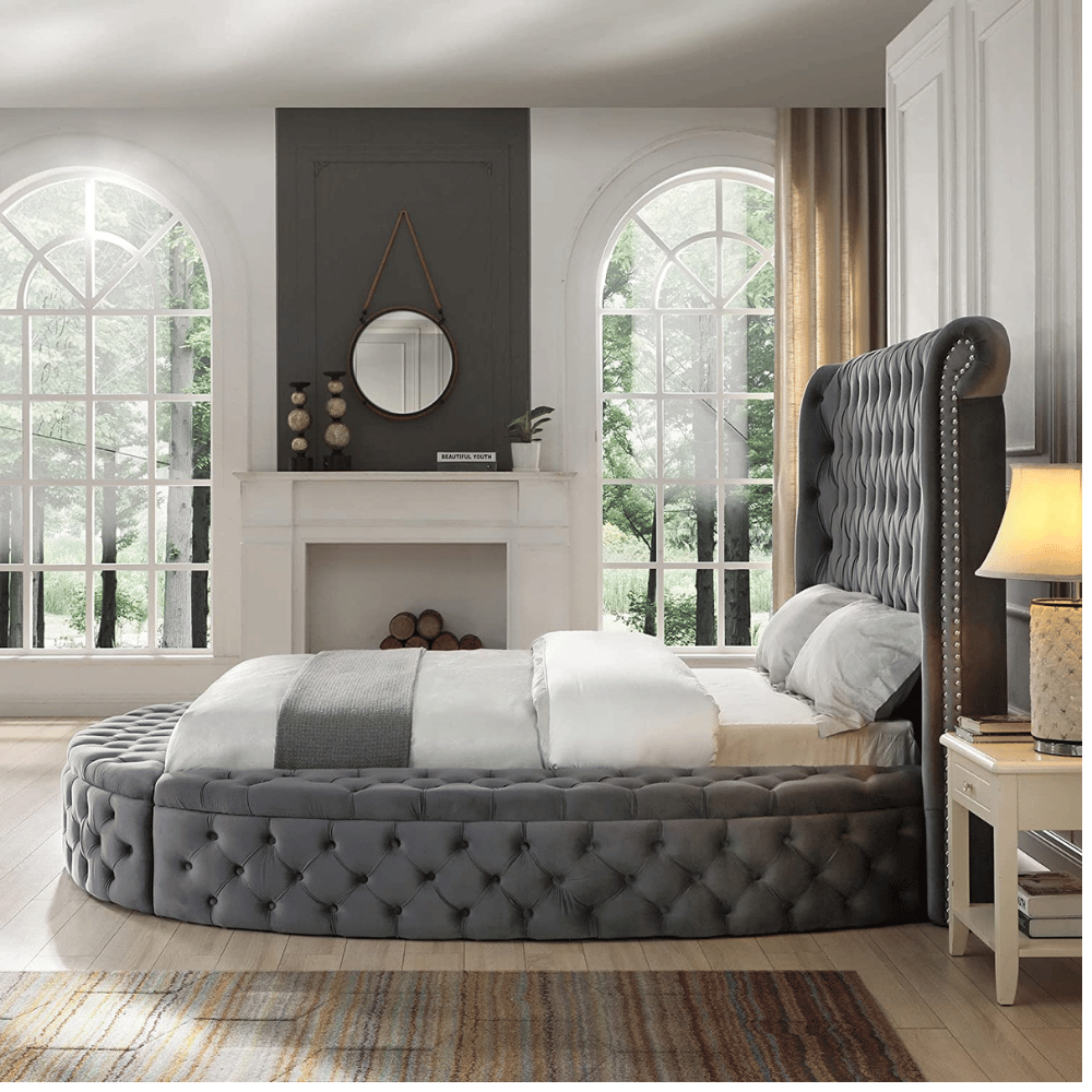 They're not just beds; they're a statement. Round beds offer a unique look and are trending for their ultra-modern design. They provide a spacious sleeping area and pair well with deep button tufting for added elegance. A round platform or wood frame enhances their aesthetic, making them a stylish and functional bedroom choice.