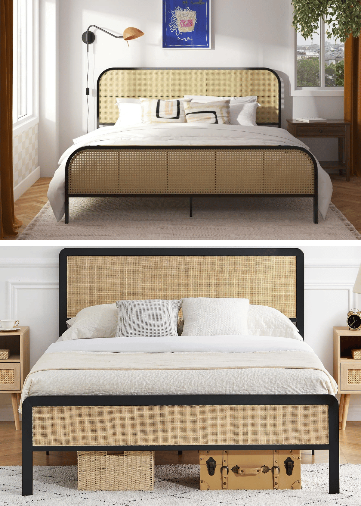 The Mr. Kate Roxanne Metal and Cane Platform Bed underscores a commitment to sustainability through its careful selection of materials and design.