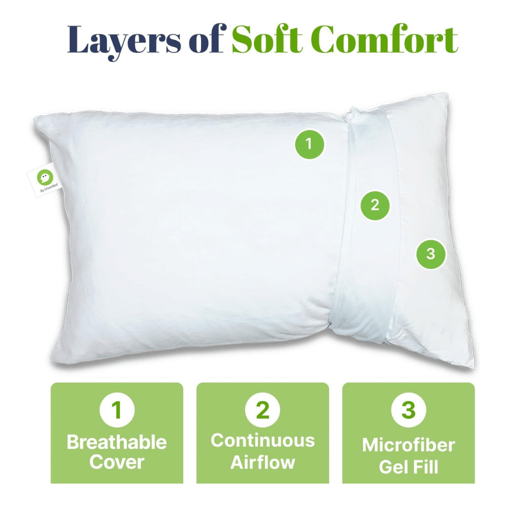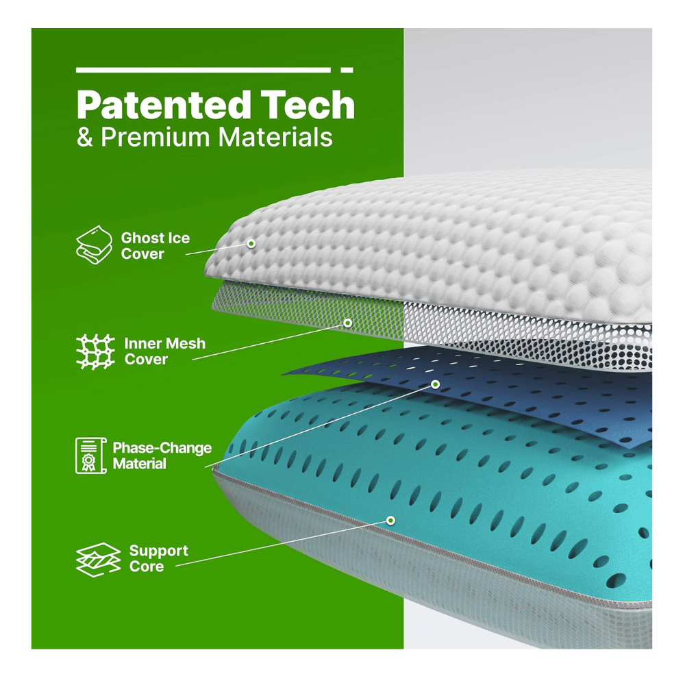 - Advanced Cooling Technology: Dive into a refreshingly cool sleep every night with GhostPillow’s patented cooling technology.