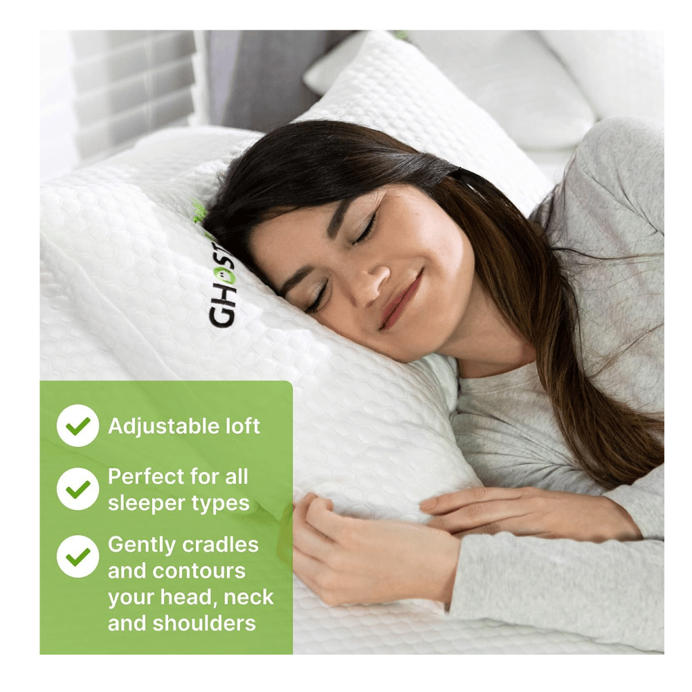 - Ergonomic Support Design: Crafted for comfort and support, the GhostPillow ensures you wake up rejuvenated without discomfort or stiffness. Its design features include: