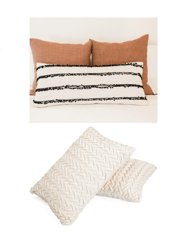 - Pillow Faux Down: 20” wide x 30” long x 7” high
