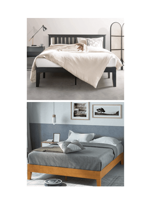 - Platform beds offer low-profile support with wood or metal slats